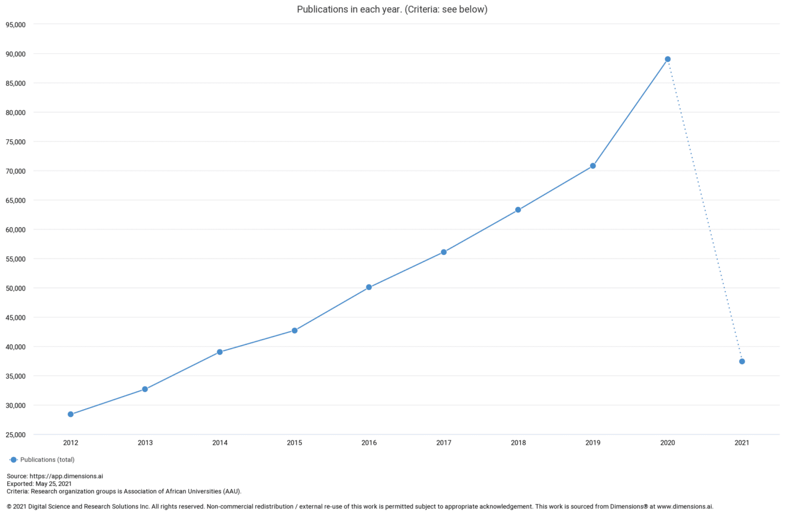 Since 2018, African researchers have produced over 400 thousand publications, with 50% of these being Open Access. It is also clear that year on year African research output has been steadily increasing. In Africa, TCC Africa’s approach to effectively working with Digital Science in providing support in accessibility of the Open Access research discovery solution Dimensions is multifold. Dimensions has partnered with Research4Life, a charity research organization providing Open Access research solutions to researchers in the Global South, to allow its community to discover research information and enable its users to gain actionable insights into research trends using the Dimensions platform. What we did as a centre was go a step further and work with the higher education stakeholders in Sub-Saharan countries to make sure users in African countries were comfortable in accessing and using Dimensions.